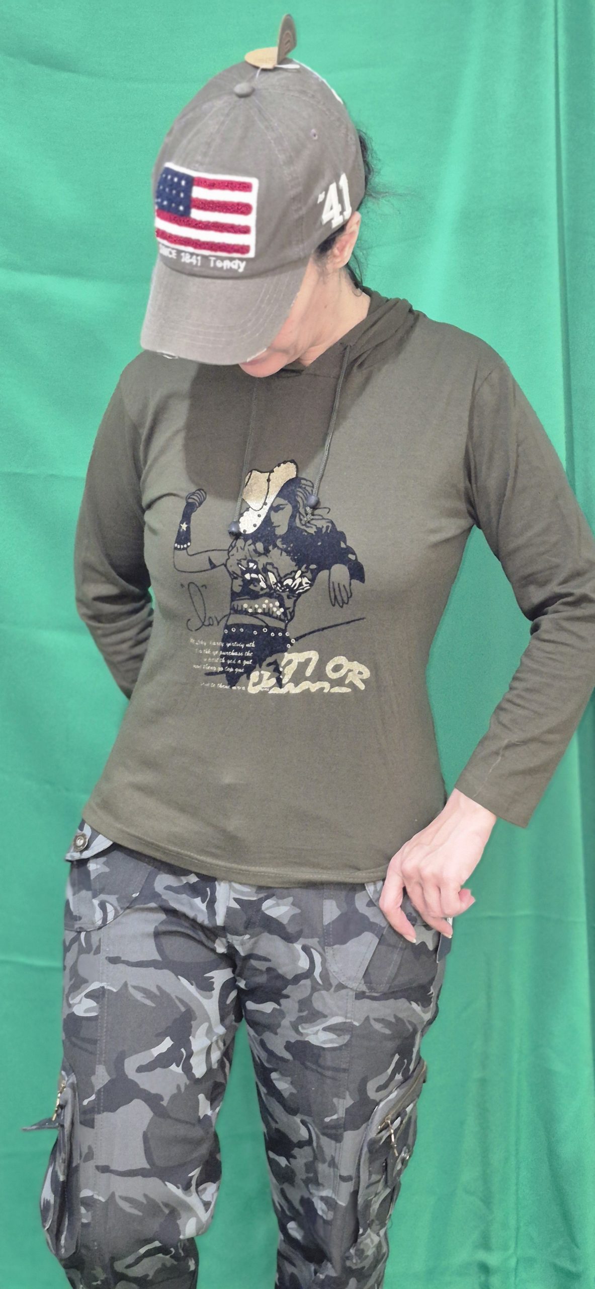 این ست دارای کلاه نقاب دار کتان ،تیشرت آستین دار دخترانه،شلوار ۶ جیب کماندویی
