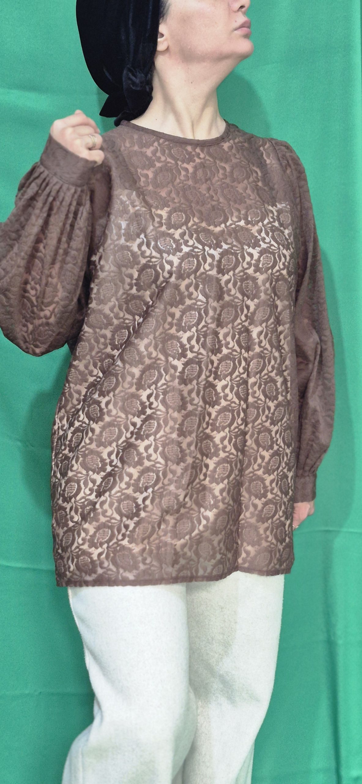 شومیز جلو بسته یقه گرد،دارای آستین برشدار و مچ پف دار