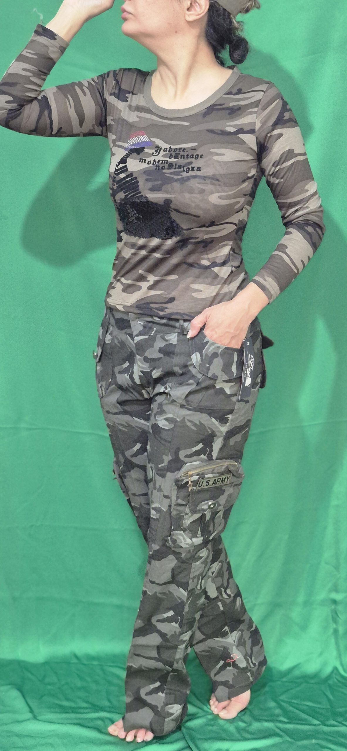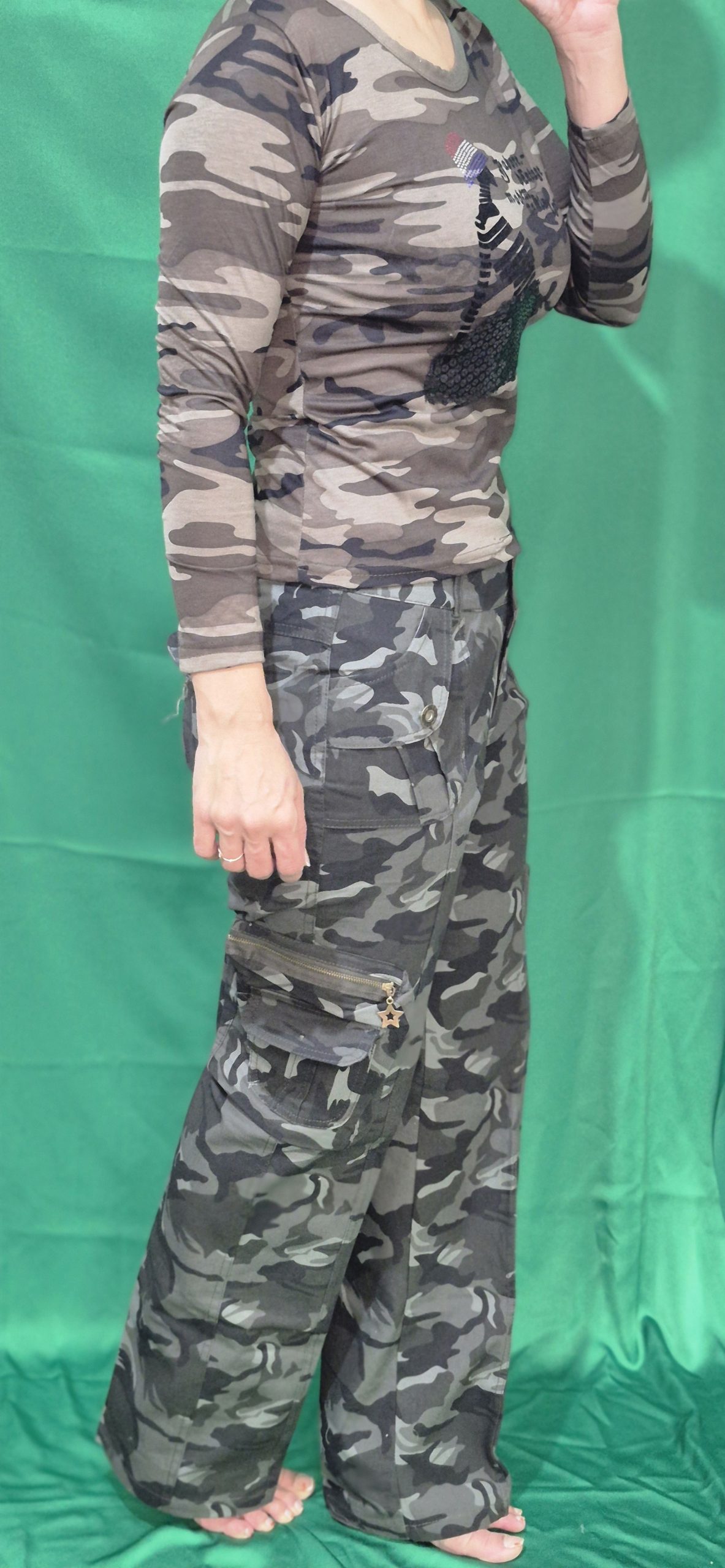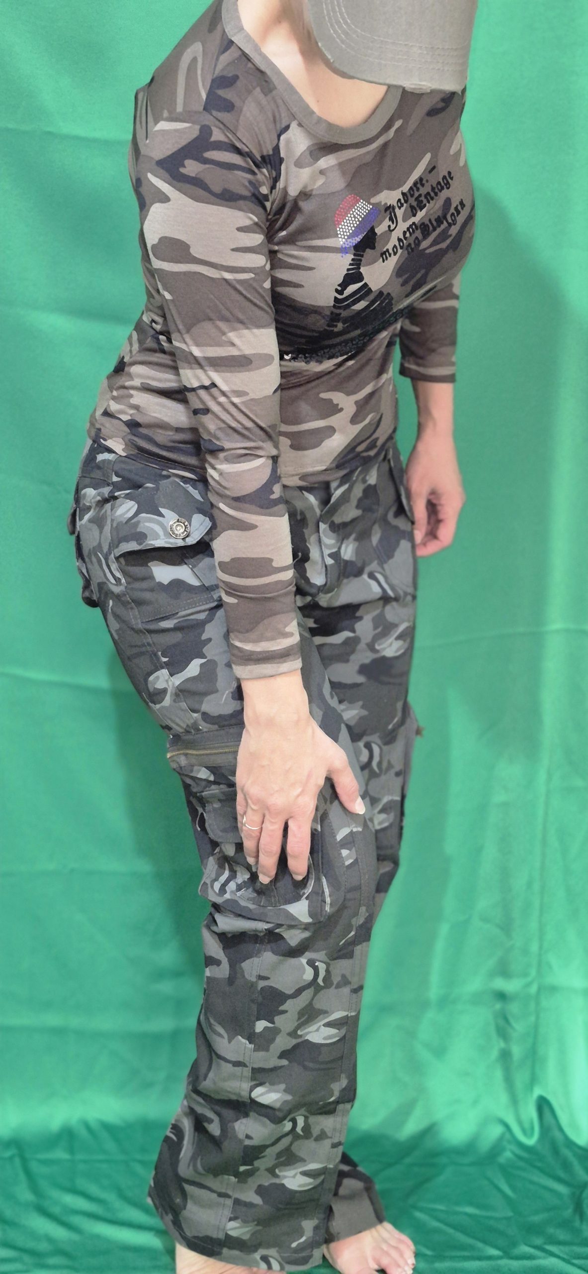 این ست دارای کلاه نقاب دار کتان ،تیشرت آستین دار دخترانه،شلوار ۶ جیب کماندویی