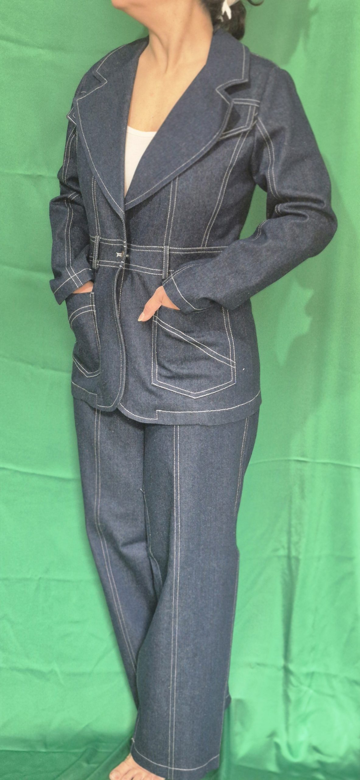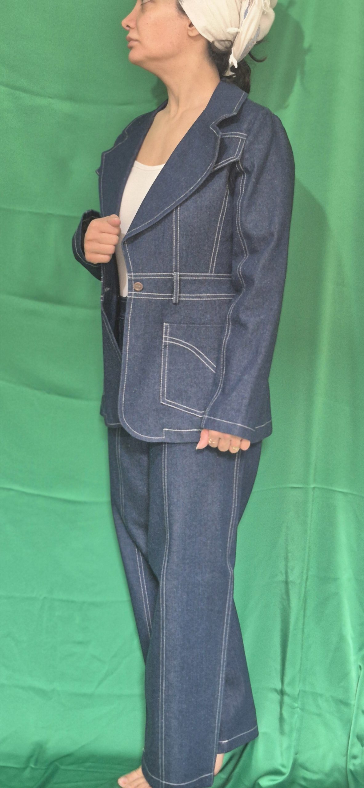 مدل یقه انگلیسی پهن و کت با برش اندامی با روکاری دوبل سفید و شلوار راسته جیب دار