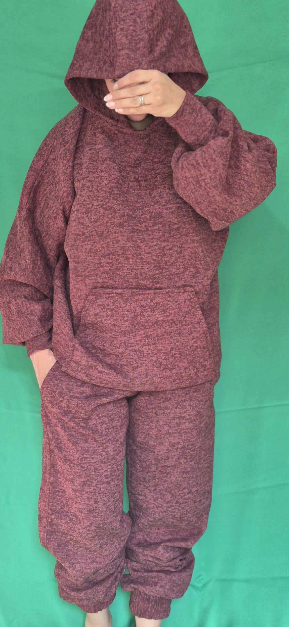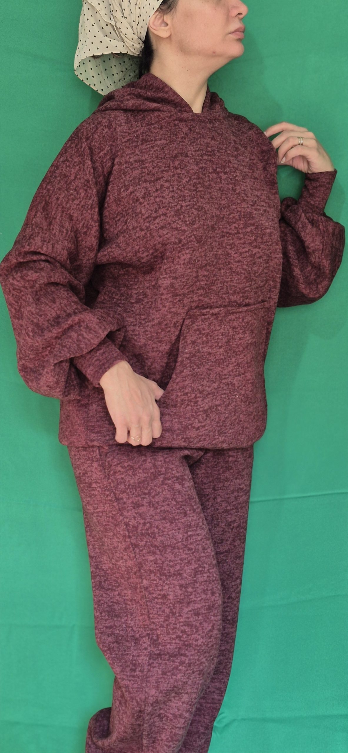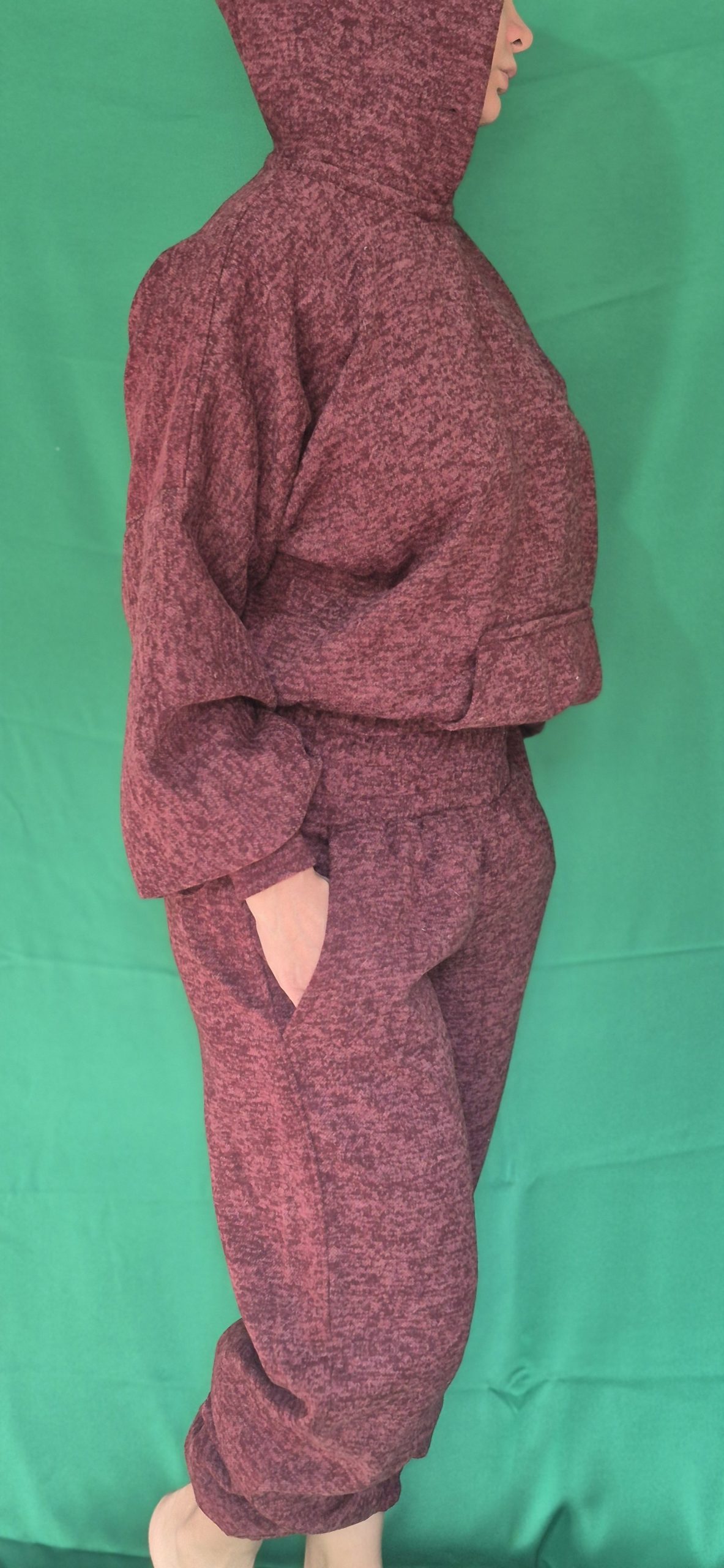 دارای کلاه،مچ ۱۲ سانت کش دوزی شده با فاصله ۱ سانتی،کمرشلوار و مچ پا۱۲سانت کش دوزی شده با فاصله ۱ سانتی